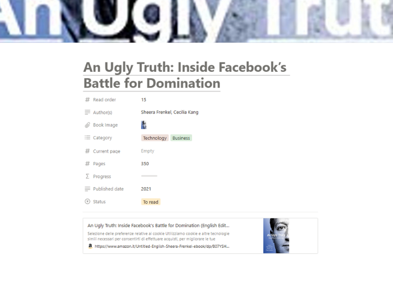 Each book has a dedicated page with information such as book's link, author, progress, number of pages, published date & status. You can summarize also the content of each book on its page.